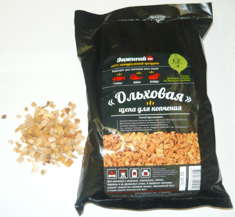 Щепа ольховая подходит практически для всех видов продуктов. В случае, если приходится коптить различные блюда в домашних условиях, она становится идеальным вариантом. Этот материал не является источником опасных соединений и не способствует формированию копоти.